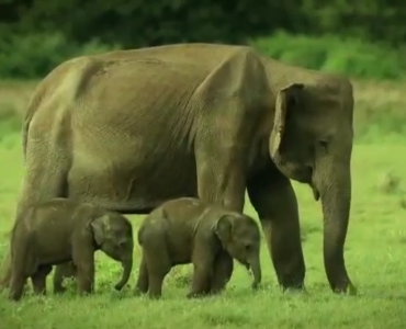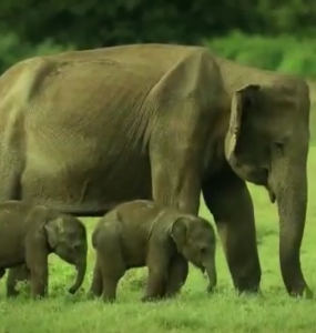 A very rare and beautiful incident is reported from the jungles of Minneriya. An elephant mother has given birth to twin calfs. This is regarded as a very rare and exceptional happening in the Elephant world.
